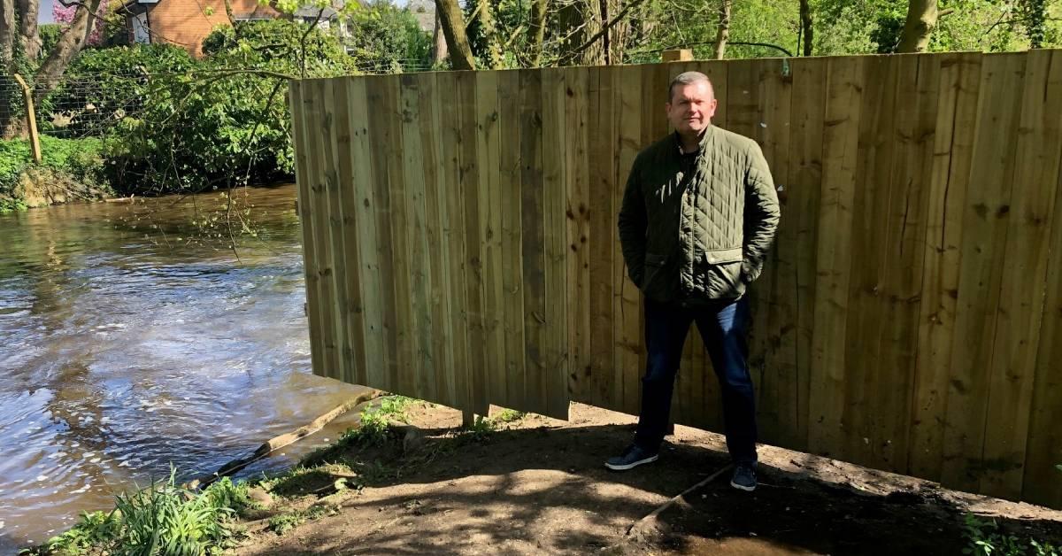 Councillor Andrew Williams near the affected part of the path that has been fenced off.