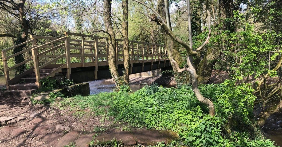The recently-repaired wooden bridge over the Skell is part of the popular route.