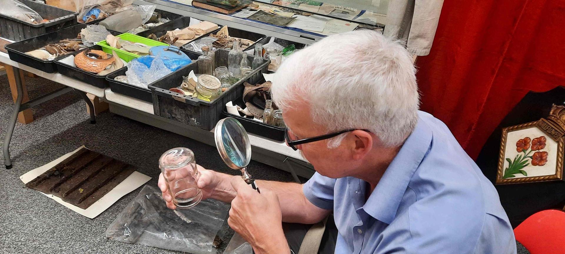 Association vice-chair Malcolm Hay inspects a find.